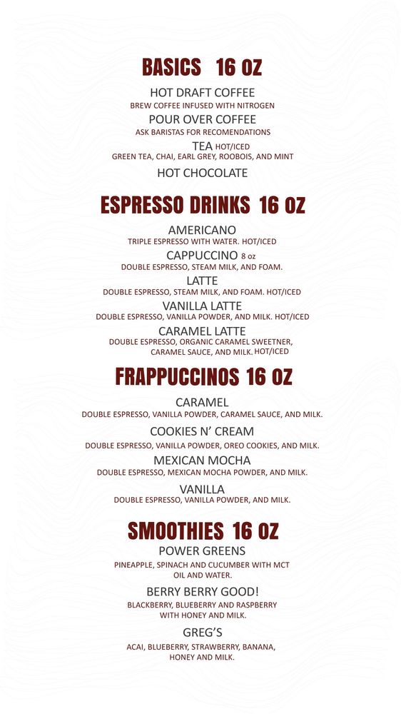 Double espresso mix with our vanilla powder and milk served on oz cup. (hot or over iced).